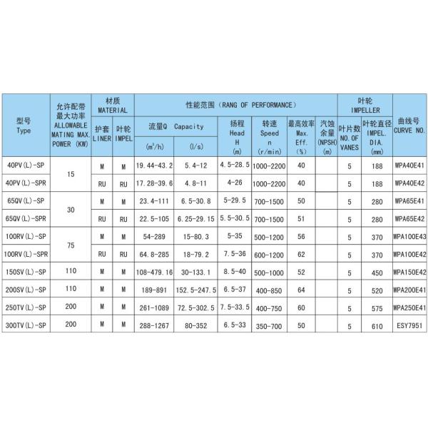 2. Wet parts of type SP(R) pump immersed in liquid are lined with rubber .They are suited to transport